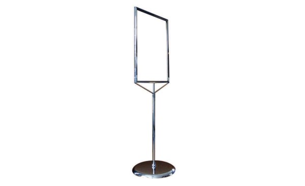 A sign frame, such as this poster stand, is ideal for advertising in- store promotions, special sales or for promoting events.